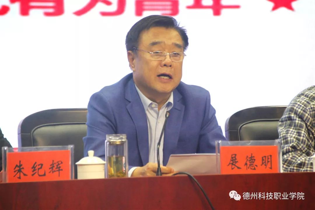 展德明强调,作为30年办学历史的高校,德科一批又一批朝气蓬勃、昂扬向上的青年大学生,用智慧、行动和梦想,在校园中描绘了美丽的人生篇章,为德科的发展增光添彩,并在德科历史上留下了一个又一个青春、靓丽的印记。希望青年团员要善于学习、主动学习,从思想政治理论、专业技能知识、社会实践活动中学习,把握好青年时期这一人生中最好的学习时光,以时不我待、只争朝夕的精神加强学习,做学习型人才。希望青年团员要培养品德、锤炼意志,既要注重增长才干,又要自觉加强思想道德修养,从日常的学习、实训、交往等细节小事做起,自觉遵守国家法律法规和校纪校规,用实际行动争做遵纪守法的模范、修身立德的标兵。希望团员青年要牢记责任、勇于担当,抱定“舍我其谁”的气魄,拿出“敢作敢当”的态度,投入到学习、实践中去。希望青年团员要努力进取、开拓创新,自我加压、努力进取,在学习、实践、大赛中争取好成绩,在精彩的青年时光中创造光辉的业绩。