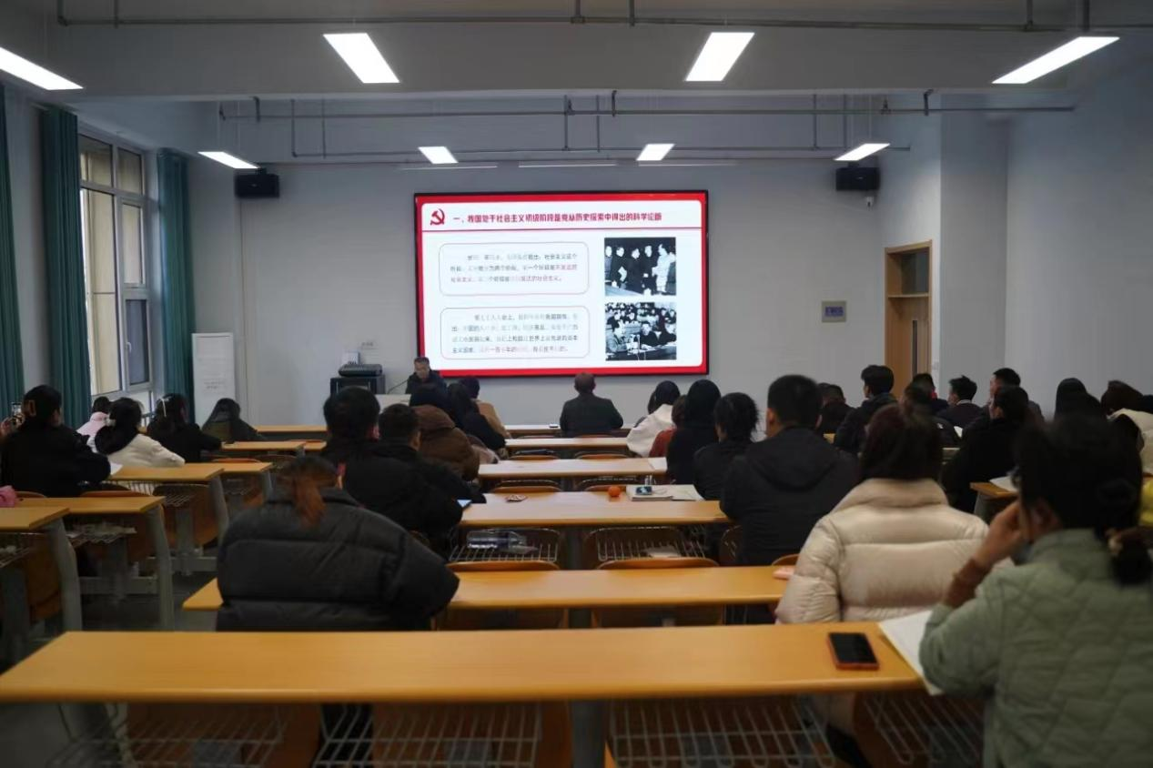 学院党委书记刘继泉给德州科技职业学院主校区医学护理学院党支部的思想政治理论课教学部和医学护理学院的全体教师上主题教育专题党课。