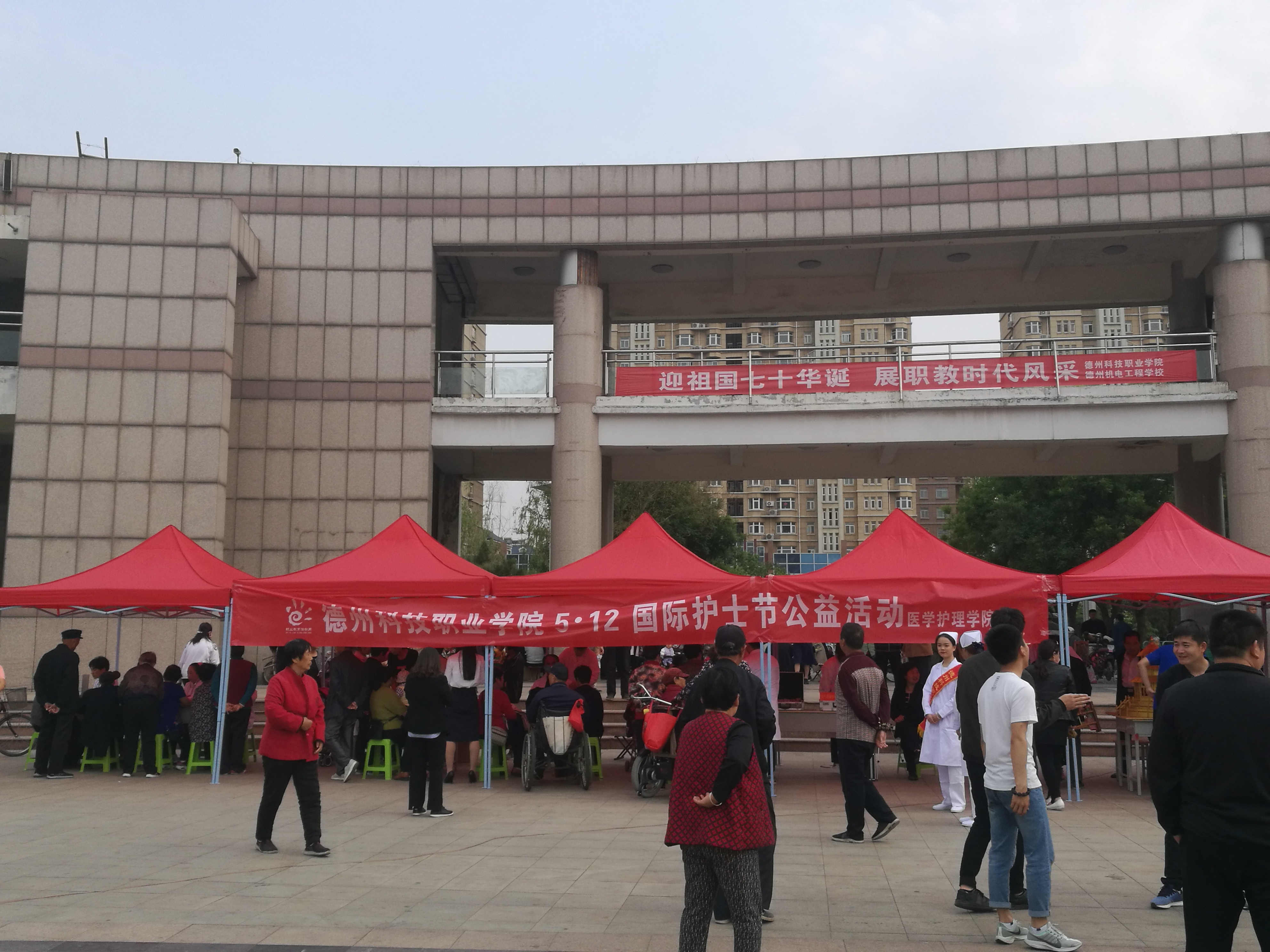 医学护理学院于2019年5月10至5月12日分别在禹城市糖城广场和禹城市新时代广场开展了职教周暨“5.12国际护士节”公益活动。此次活动开展的项目包括:免费测量血压、急救技能普及、免费推拿按摩和室内空气质量检测。医学护理学院范松梅院长、高圣迎副主任、高志红科长、孙启奎科长亲临现场,与专业教师和同学们一起参与到公益活动中。老师和同学们热情周到的服务,吸引了不少市民前来测量血压、体验推拿按摩、学习急救技能、咨询室内空气检测和治理。五月天,气温已近30℃,炎热的天气也并未影响市民的参与热情,很快等待参与的市民就排成了长队。