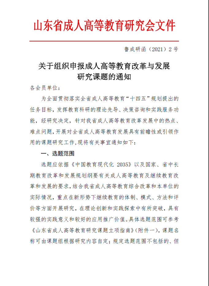 关于组织申报成人高等教育改革与发展研究课题的通知