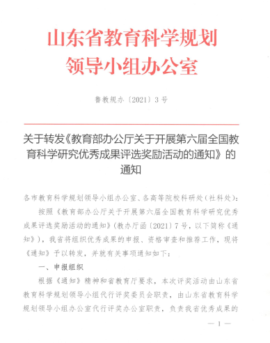 关于转发《教育部办公厅关于开展第六届全国教育科学研究优秀成果评选奖励活动的通知》的通知