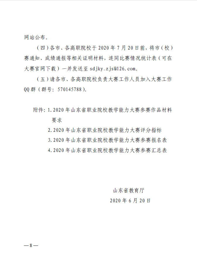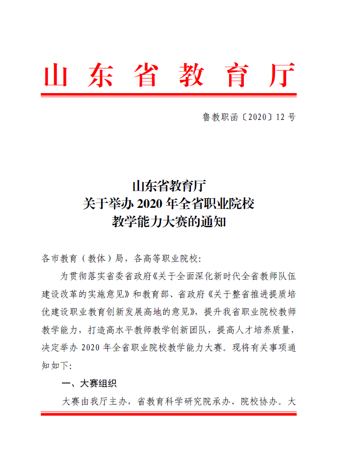 山东省教育厅关于举办2020年全省职业院校教学能力大赛的通知