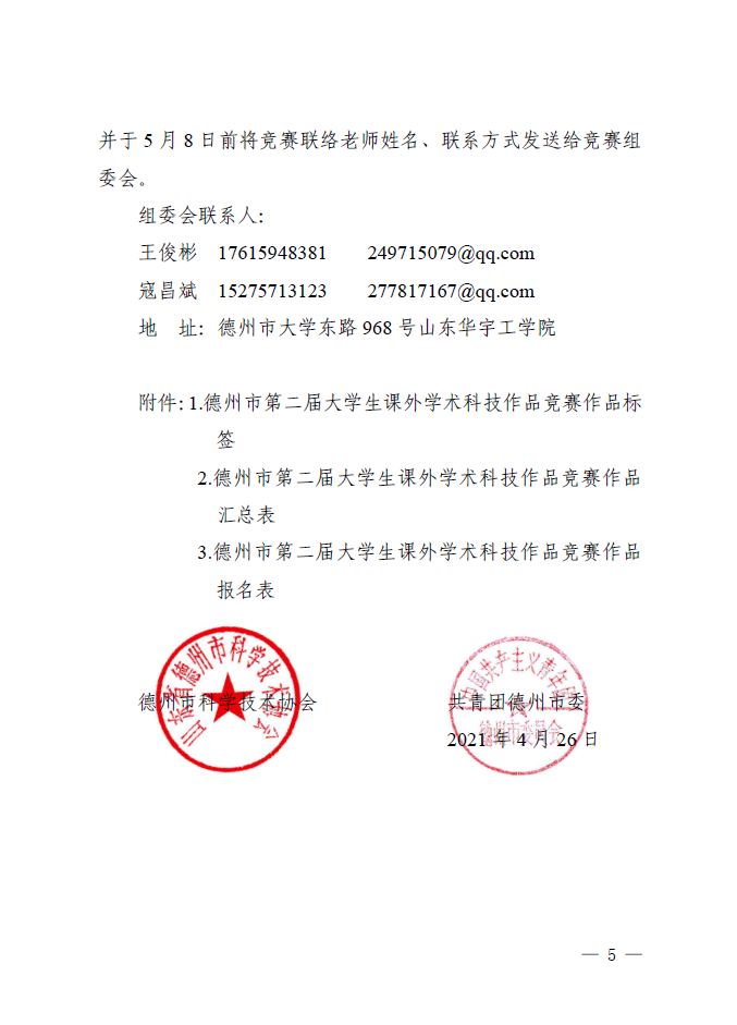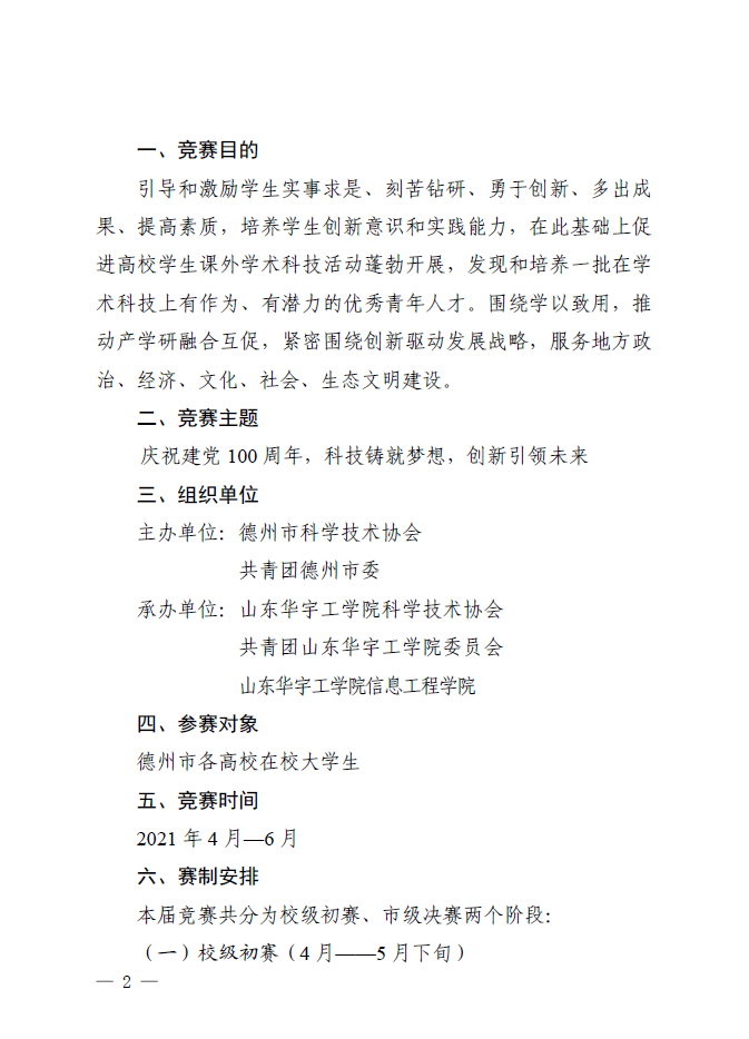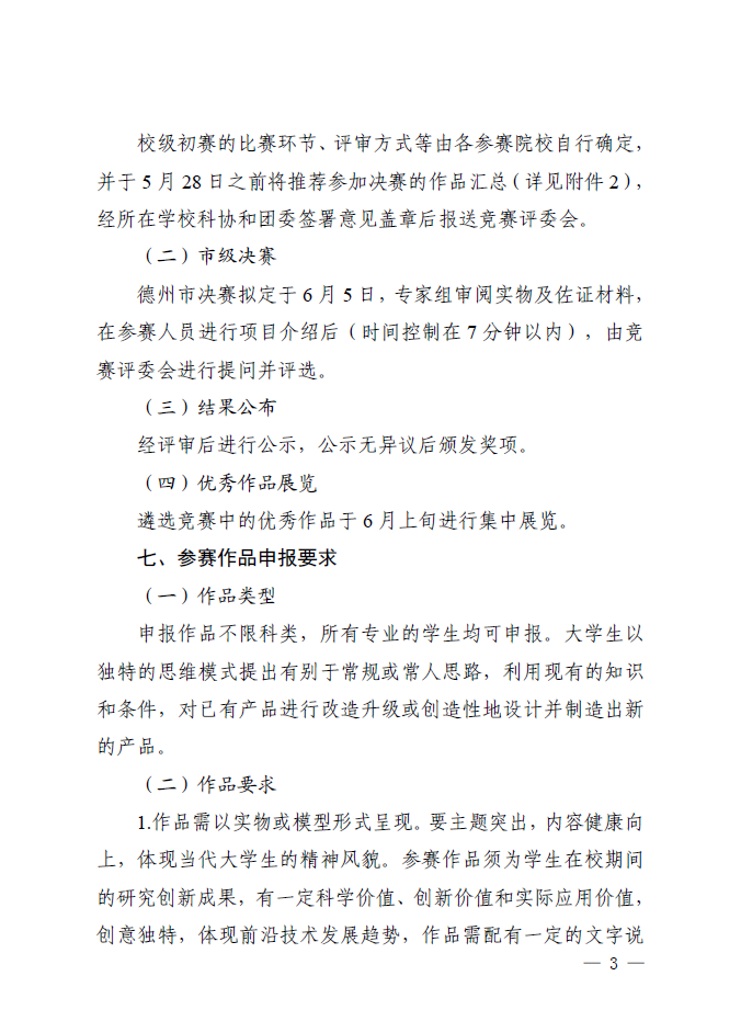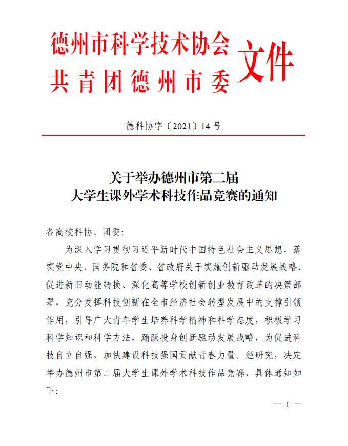 关于举办德州市第二届大学生课外学术科技作品竞赛的通知