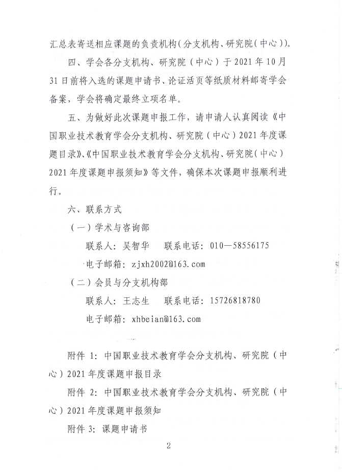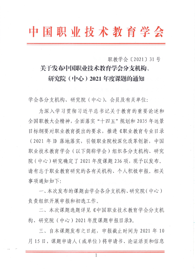 关于发布中国职业技术教育学会分支机构、研究院2021年度课题的通知