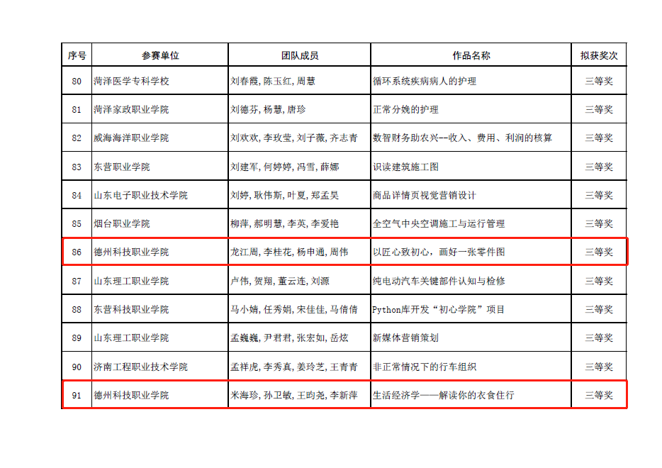 山东省“技能兴鲁”职业技能大赛校内评审公示