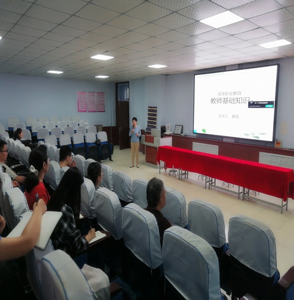 教务处正教授董霞老师通过对新入职教师教育教学能力、职业规划与管理的培训、首先在明确职业教育是培养应用型人才的基础上,强调职业教育的教学基本理论以“必需、够用”为度,注重实践性教学。其课程开发的任务就是把社会发展的客观要求、知识增长的客观趋势和学生成长的客观需要转化为具有适当水准、适当内容、结构优化、功能优越的新课程。其次重点讲述了如何锻炼提高高职教师应具备的包括语言、备课、教案、板书和讲解的教学基本能力。将其总结归纳为四个步骤:一是模仿期。先模仿其他优秀教师的教学方式,从中提炼出自己的东西,这是课堂教学能力的第一步,也是至关重要的一步。二是理论武装,上正道的提高期。三是铸特色的升华期。四是贵得法的成熟期。