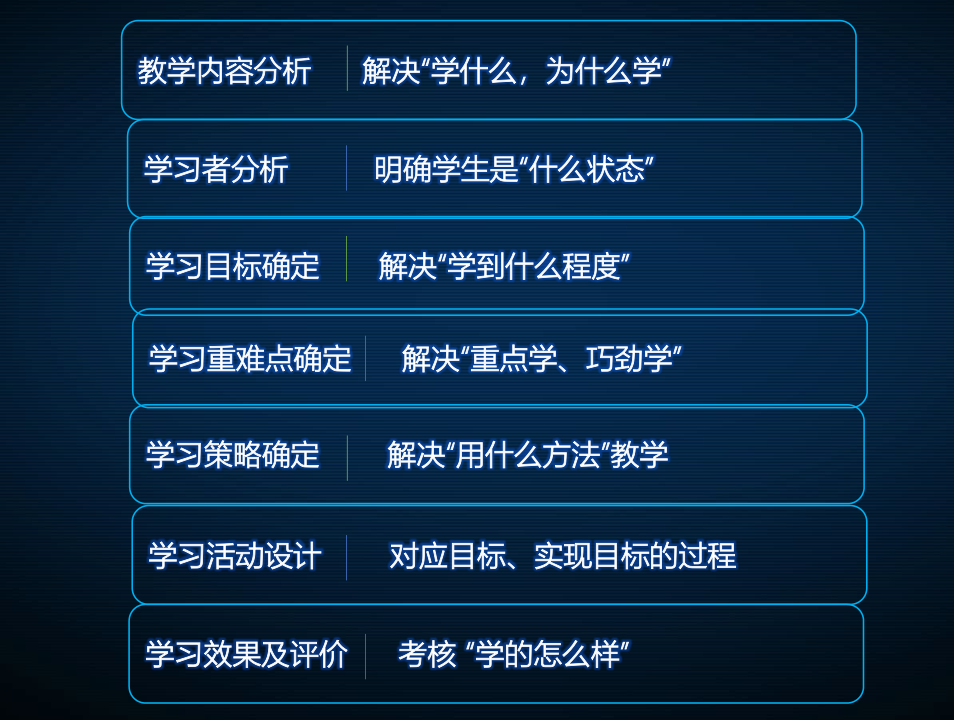在新教师的视角,要先研读本专业的人才培养方案,了解担任的本课程安排在第几学期,多少课时分配,周课时多少,而后去解读本课程的课程标准,这一门课的前沿后续是什么,要讲什么内容,每一项目(模块)具体课时如何安排,每课时需要讲的内容是什么。依据人才培养方案和课程标准,制定出本课程的教学实施方案。最后聚焦在每一堂课该如何去上,准备每堂课的教案和课件,课堂上需要解决的问题包括以下几个方面:
