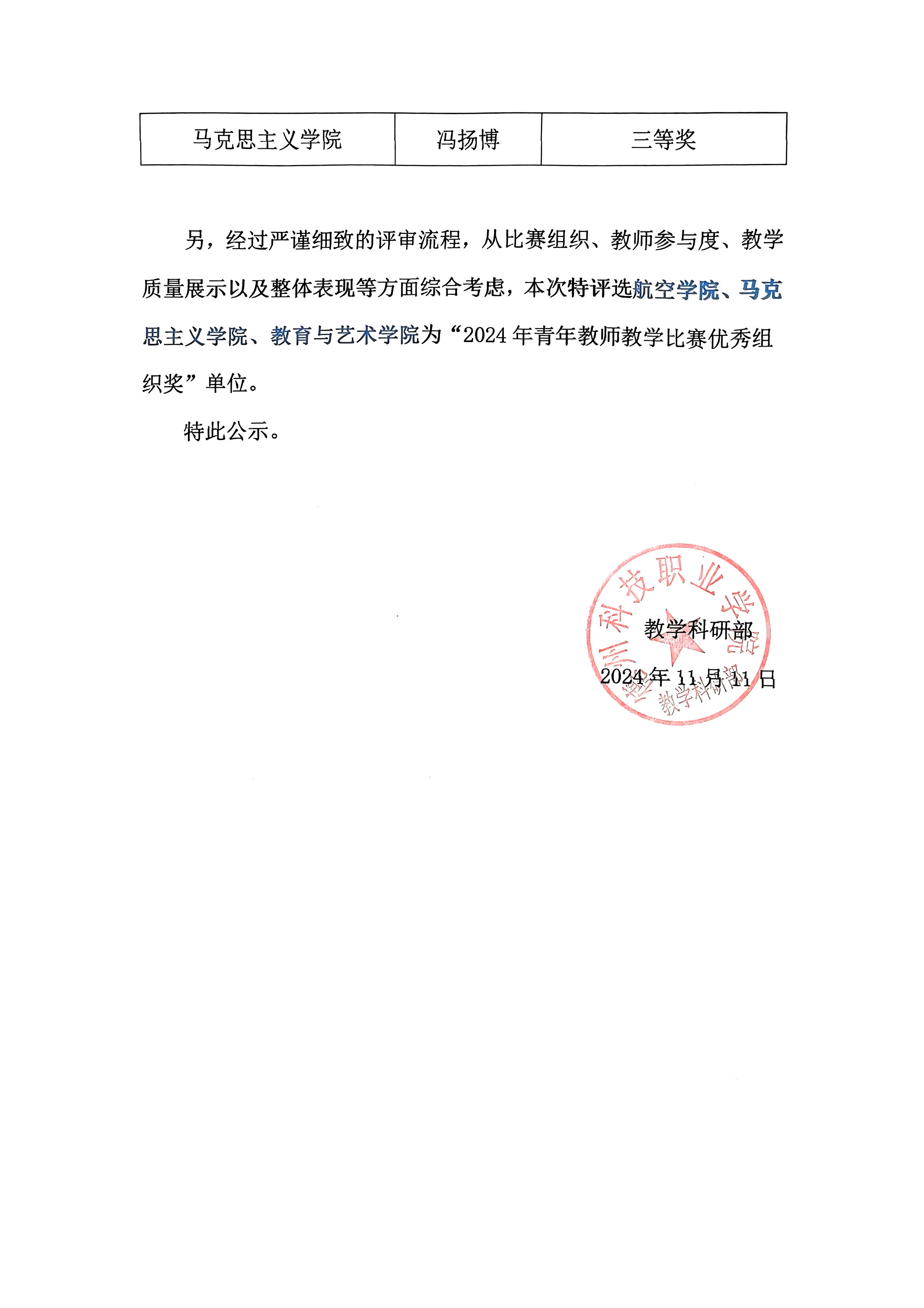 德州科技职业学院2024年青年教师教学比赛结果公示