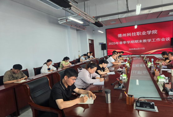 为进一步加强教学管理,提升教学质量,2025年6月17日下午,教学科研部教学科在德州校区六楼会议室召开2025年春季学期期末教学工作会议,教学科研部于秀妮副部长主持会议,教学科、各二级学院教学主任、成绩管理员和实验实训室管理员参加此次会议,会议主要针对期末考试、期末教学检查和实验实训室管理工作进行部署安排。