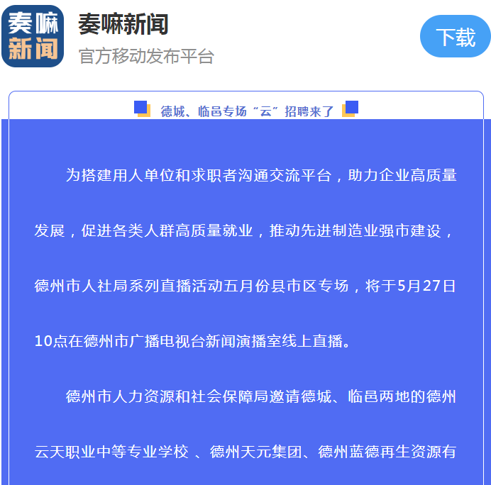 【直播预告】就在这个周五!德城、临邑专场“云”招聘来了!近千个优质岗位等您来“拿”