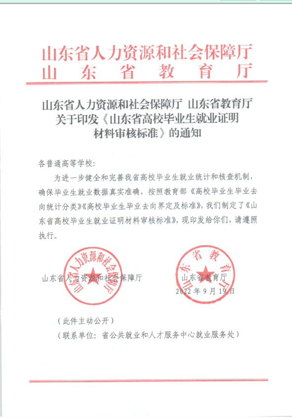关于印发《山东省高校毕业生就业证明材料审核标准》的通知