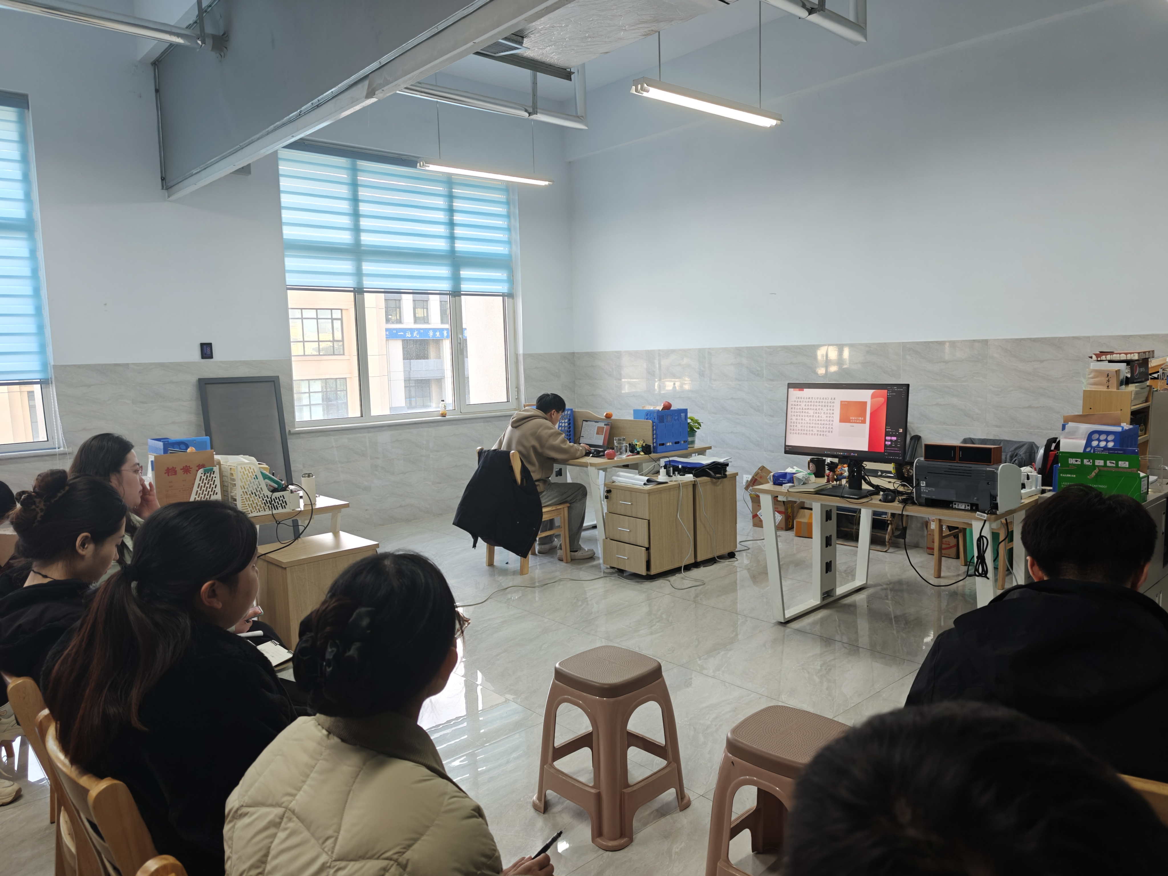 根据《教育部办公厅关于在高等学校开设国家安全教育公共基础课的通知》(教思政厅函〔2024〕14号)、(教办思政〔2024〕257号)等文件要求,我校自2025年春季学期起,面向全校23级学生首次开设《国家安全教育大学生读本》课程。为进一步推进课程建设、提高课堂实效,马克思主义学院于近日举办了《国家安全教育大学生读本》课程集体备课会,教研室全体教师参加了此次备课活动。