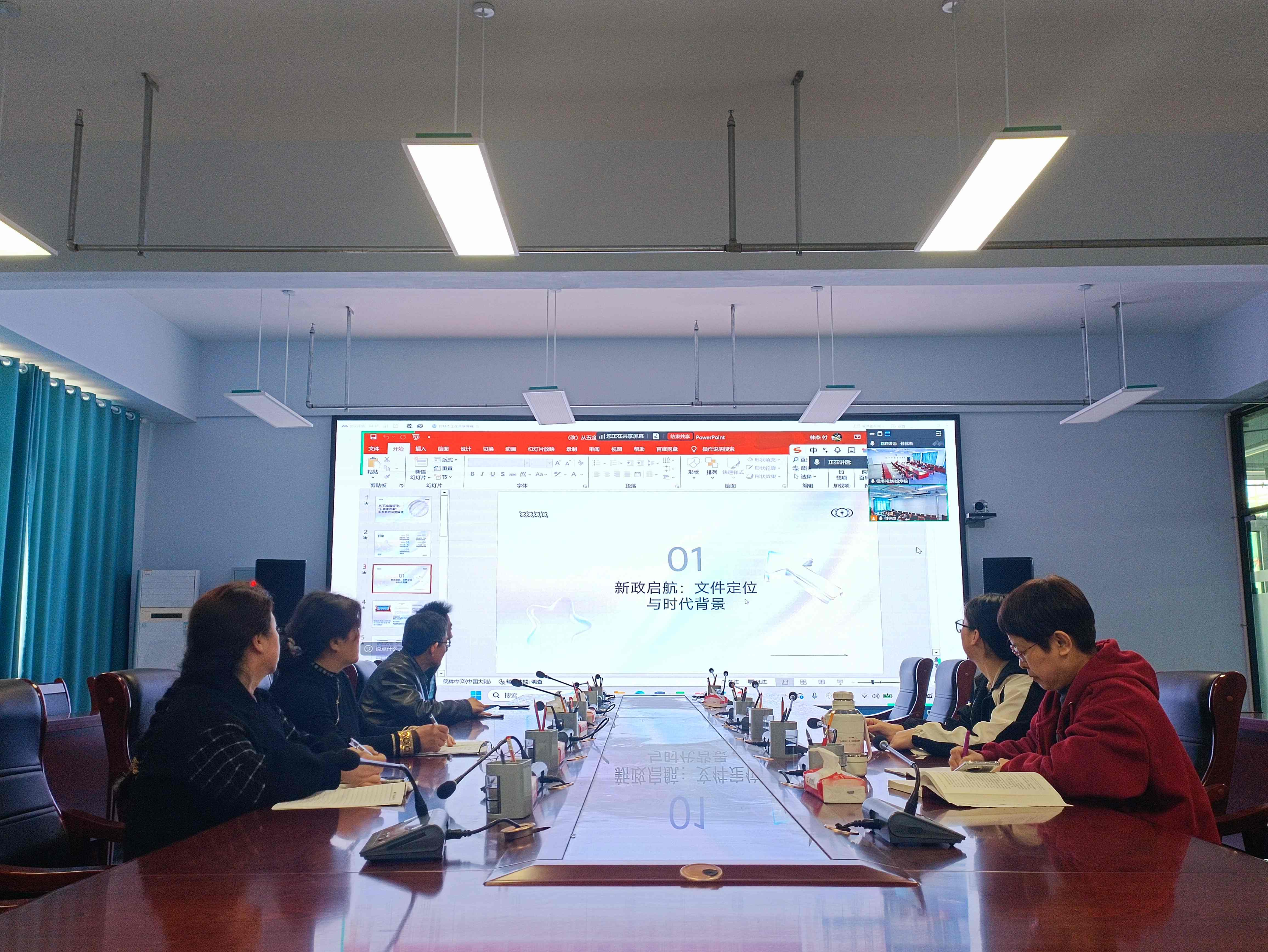 为深入贯彻落实国家职业教育改革最新精神,精准把握新时代职业教育发展方向,更好地将思政教育与职业教育高质量发展深度融合,4月7日下午,马克思主义学院全体教师齐聚会议室,开展教职成〔2026〕1号文件(《教育部关于深化职业教育教学关键要素改革的意见》)专题集中学习活动。本次学习采用“青年教师领学+核心内容解读+集体研讨交流”的形式,确保政策学习入脑入心、落地见效。
