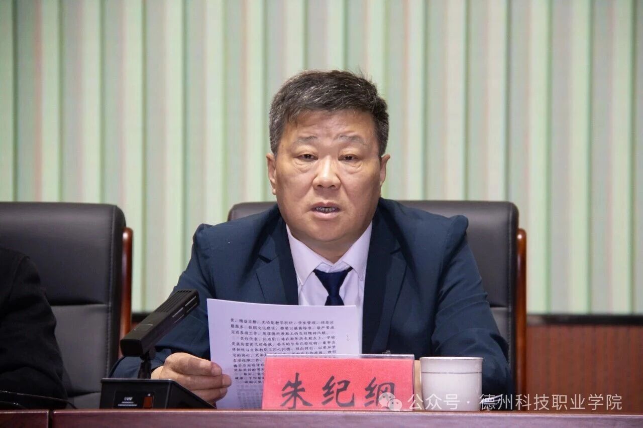 朱纪纲在最后讲话中强调,学校董事会将始终坚守“为党育人、为国育才”的初心使命,严格遵循高等教育发展规律和职业教育办学要求,将为学校高质量发展提供坚实保障作为核心职责,全力以赴为学校发展铺路搭桥、保驾护航,让每一位教职工安心从教、潜心育人,让学校发展稳步推进、持续提升。希望全体教职工围绕当前迎评等一系列重点任务和“十五五”各项目标,同心同德、同向同行,以更加坚定的决心、更加务实的态度、更加有力的举措,共同书写德州科技职业学院更加美好的明天!