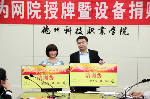 仪式上,周伟与董良互签合作协议书;董良向学院捐赠价值20.61万元设备用于华为订单班学员实习实训,白庆丽代表学院向济南博赛网络授予设备捐赠证书;董良与邵淑华互授实训基地牌匾,并向学院捐赠总价值5000元的师资培训费。