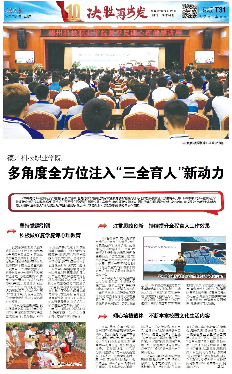 齐鲁壹点:德州科技职业学院多角度全方位注入“三全育人”新动力