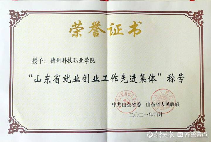 日前,经山东省就业创业工作先进集体和先进个人评选表彰工作领导小组审核并通过公示,中共山东省委、山东省人民政府授予德州科技职业学院“山东省就业创业工作先进集体”。
