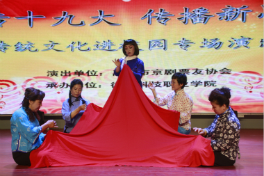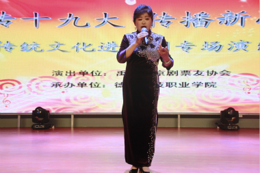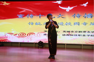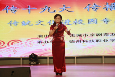 本次文艺演出是德州市非物质文化遗产教育传承基地在大禹大讲堂揭牌后,我院举办的以学习贯彻落实习近平新时代中国特色社会主义思想和党十九大精神为主题的系列活动之一。晚会节目以非物质文化遗产京剧为载体,宣传习近平新时代中国特色社会主义思想和党的十九大精神,使理论宣讲更贴近实际、贴近群众、贴近生活,各位京剧艺术家的精彩表演引起了现场近1000名师生的热烈反响。
