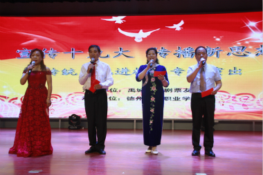 5月11日晚上,德州科技职业学院“宣传十九大,传播新思想”传统文化进校园文艺演出在学院大禹大讲堂隆重举行。学院首任书记、院长朱国材出席活动并同现场的1000名师生代表观看演出。