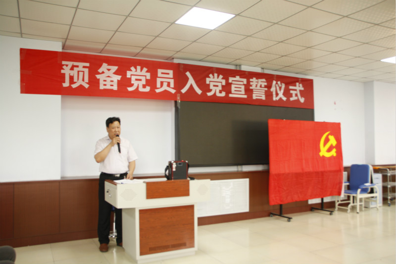 党委副书记卢传升作讲话卢传升为入党师生提出两点希望,第一:牢记誓词,付诸行动。入党誓词概括了党对党员的要求,也概括了党员对党组和人民所承担的双重责任。第二:不忘初心,无愧称号。在日常学习、工作生活中,在大是大非面前,生死关头,要时刻想到自己是一名共产党员,要经受住考验。党员不仅是荣誉,更是信念和使命,加入了党组织就要为之努力奋斗,对于尚未入党的同学,在平时生活中还要继续努力学习知识。