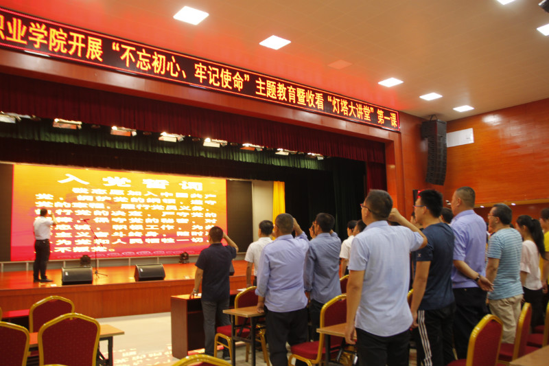 7月1日上午,德州科技职业学院主校区全体党员,在大禹大讲堂,开展“不忘初心、牢记使命”主题教育暨收看“灯塔大讲堂”第一课。