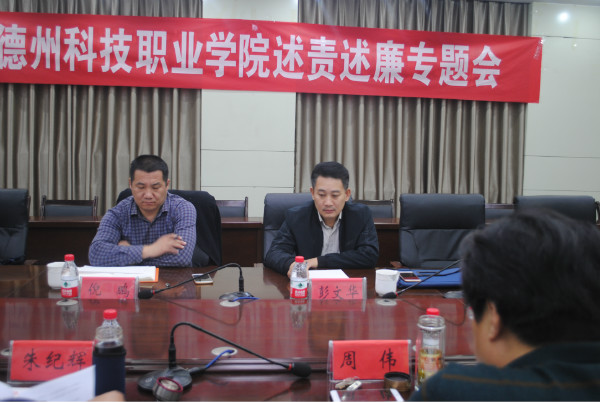 按照禹城市纪委监委工作安排,10月24日下午,学院主校区召开领导班子述廉述责专题会。禹城市纪委监委第五纪检监察组组长倪鹏、副组长彭文华出席专题会。学院党委委员、副院长、主校区常务院长周伟主持专题会。