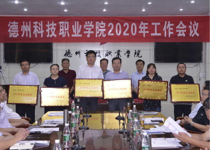 按照议程,学院副院长、青岛校区院长徐志利宣读学院关于通报表扬2019年度获得国家、省、市荣誉的决定,以及关于表彰2019年度先进集体和先进个人的决定;学院党委副书记卢传升宣读《中共德州科技职业学院委员会关于表彰2019年度先进党支部和优秀党员的决定》。