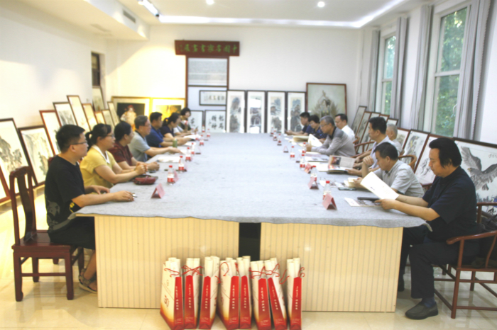 在学院中国名家书画展展厅会客室,学院领导与来宾们举行座谈交流。朱国材首先代表学院2万名师生员工,向各位来宾莅临学院参观交流、为学院发展提出宝贵意见表示热烈欢迎和衷心感谢。朱国材向各位来宾简要介绍了学院发展沿革和基本情况,近年来在加强党的建设、人才培养、教学科研、招生就业等方面取得的成绩,以及在推动专业结构提档升级服务新旧动能转换、打造职业教育创新发展高地、实施创新发展等重点工作开展情况。
