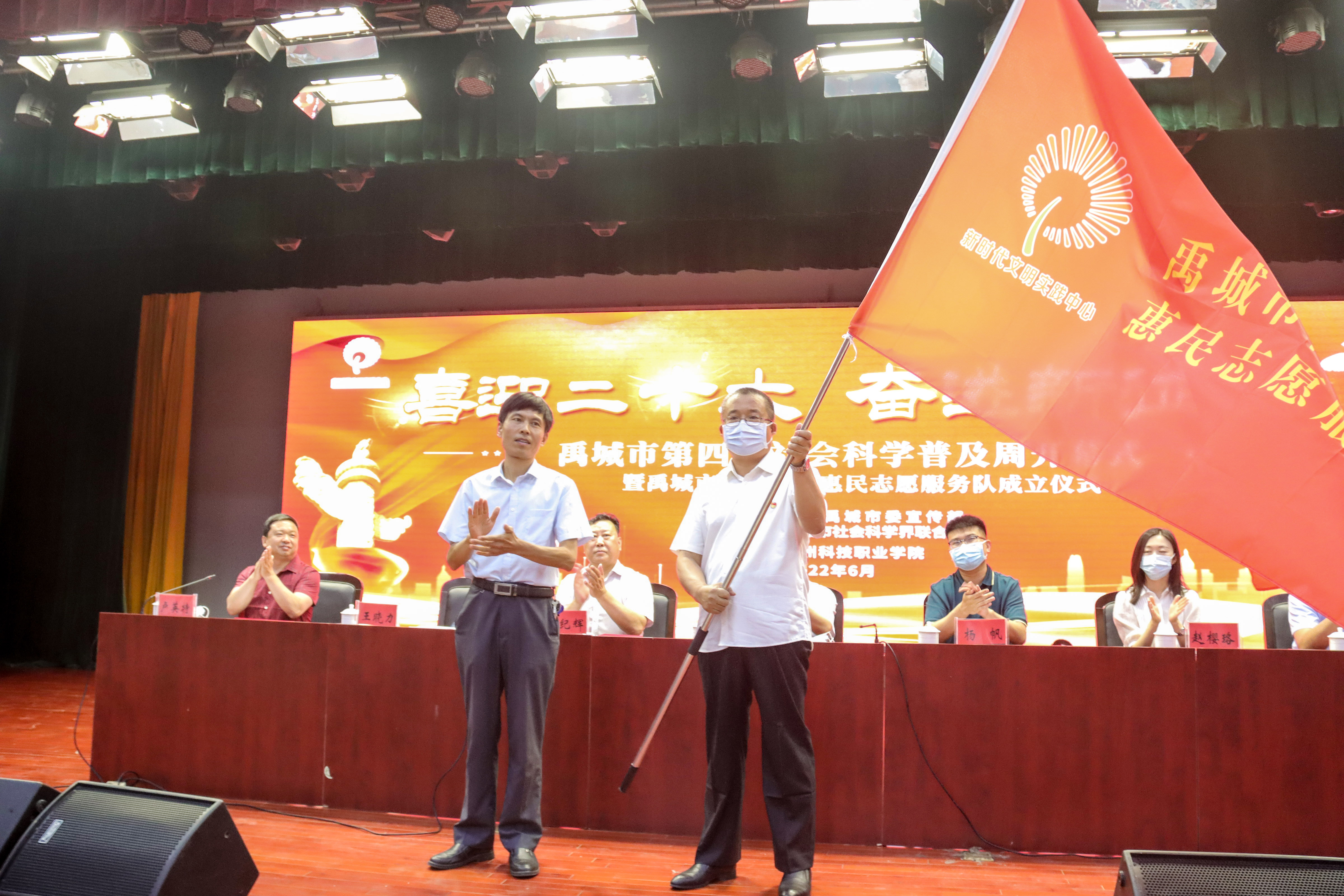 开幕式上,禹城市委宣传部常务副部长王晓力为禹城市社科普及惠民志愿服务队授旗;禹城市委宣传部副部长吴境轩宣读了《关于组建禹城市社科普及惠民志愿服务队的决定》;全体与会领导还为禹城市社科普及惠民志愿者颁发了聘书。