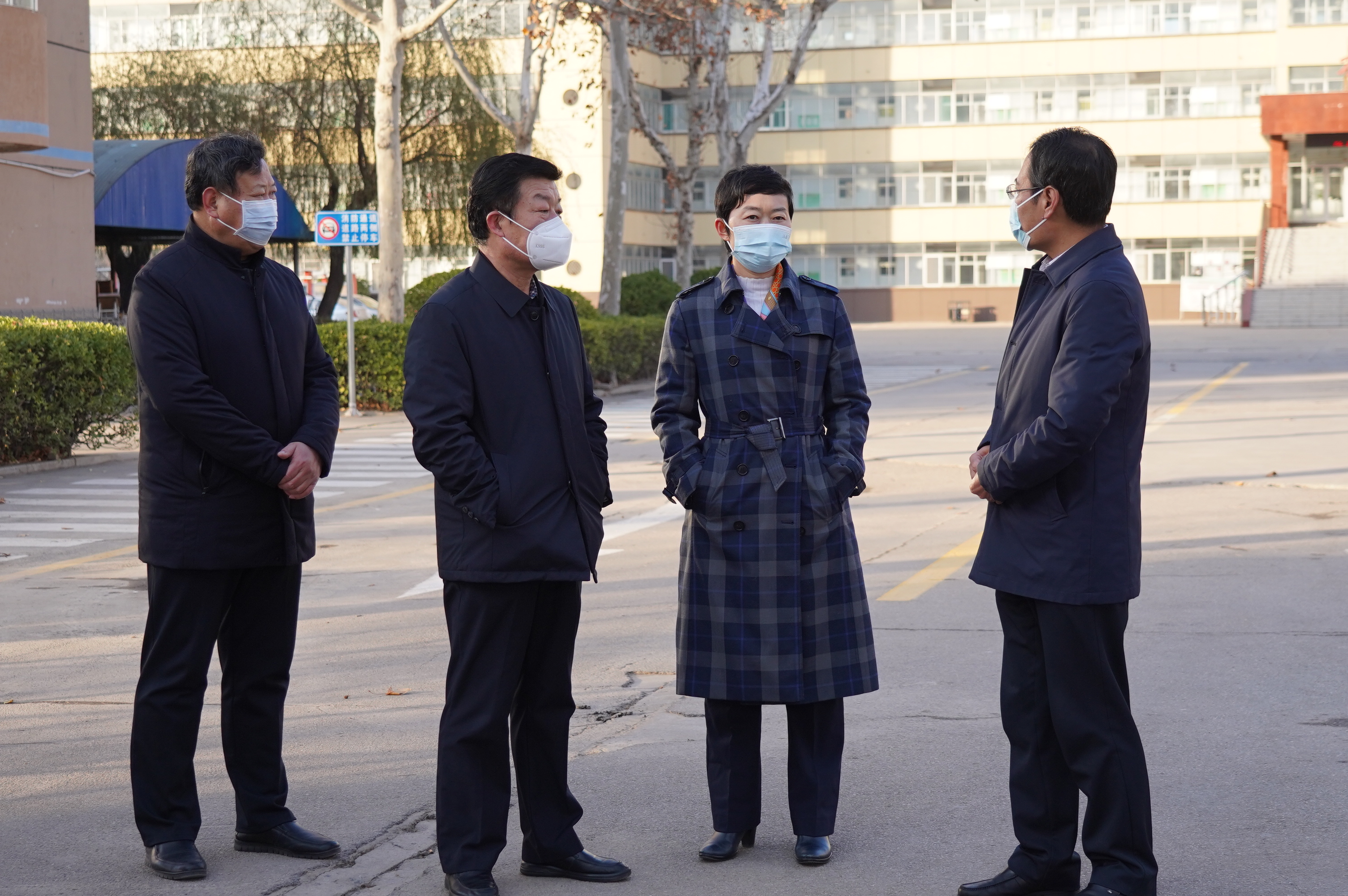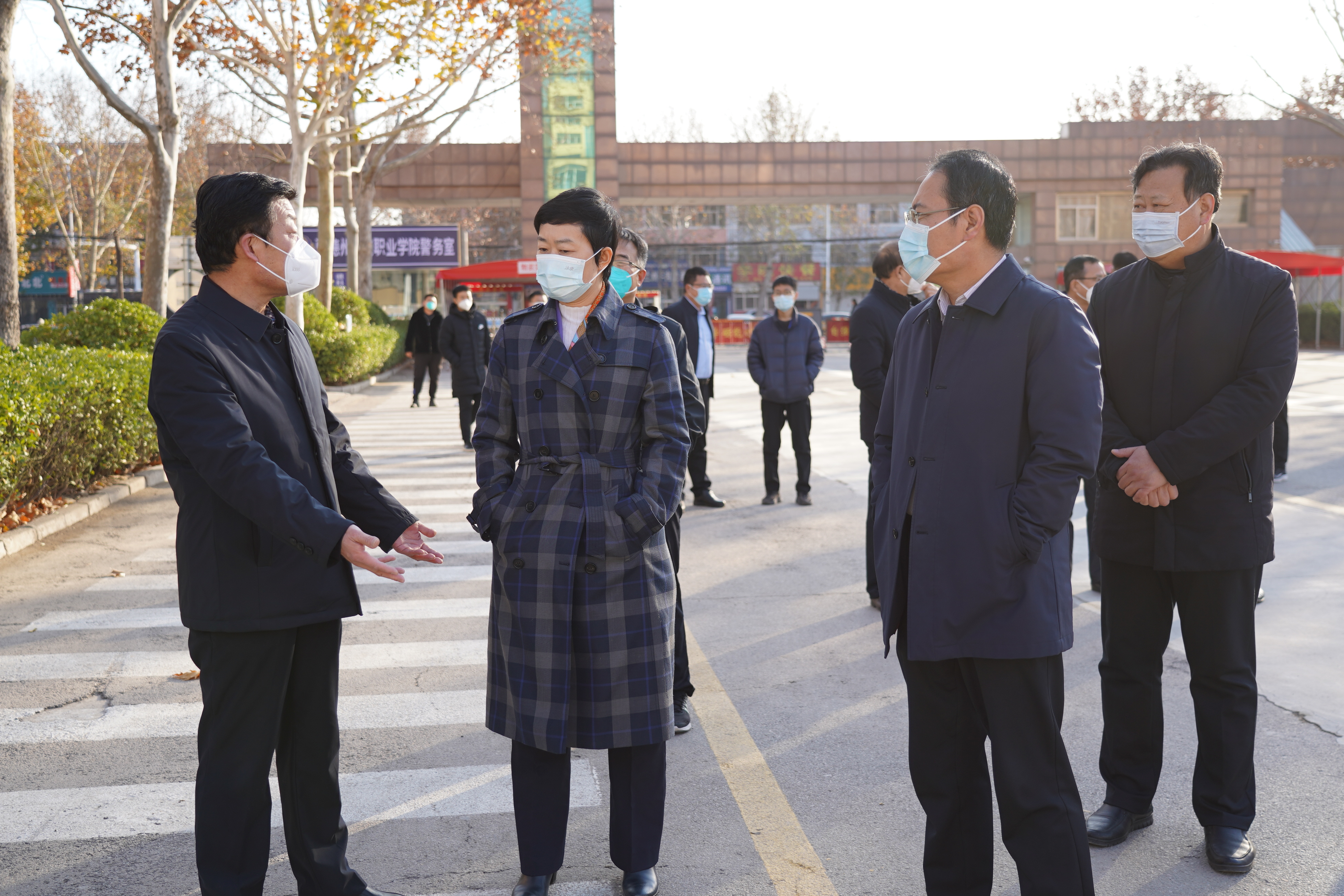 12月1日下午,德州市人民政府党组成员、副市长邵红双来院调研疫情防控和校园安全工作。德州市教育和体育局副局长陈良忠,禹城市委副书记、市长苏兰武,市人大常委会主任闫秀丽,市教育和体育局党组书记、局长杨传斌,十里望回族镇党委副书记、镇长金林参加调研。