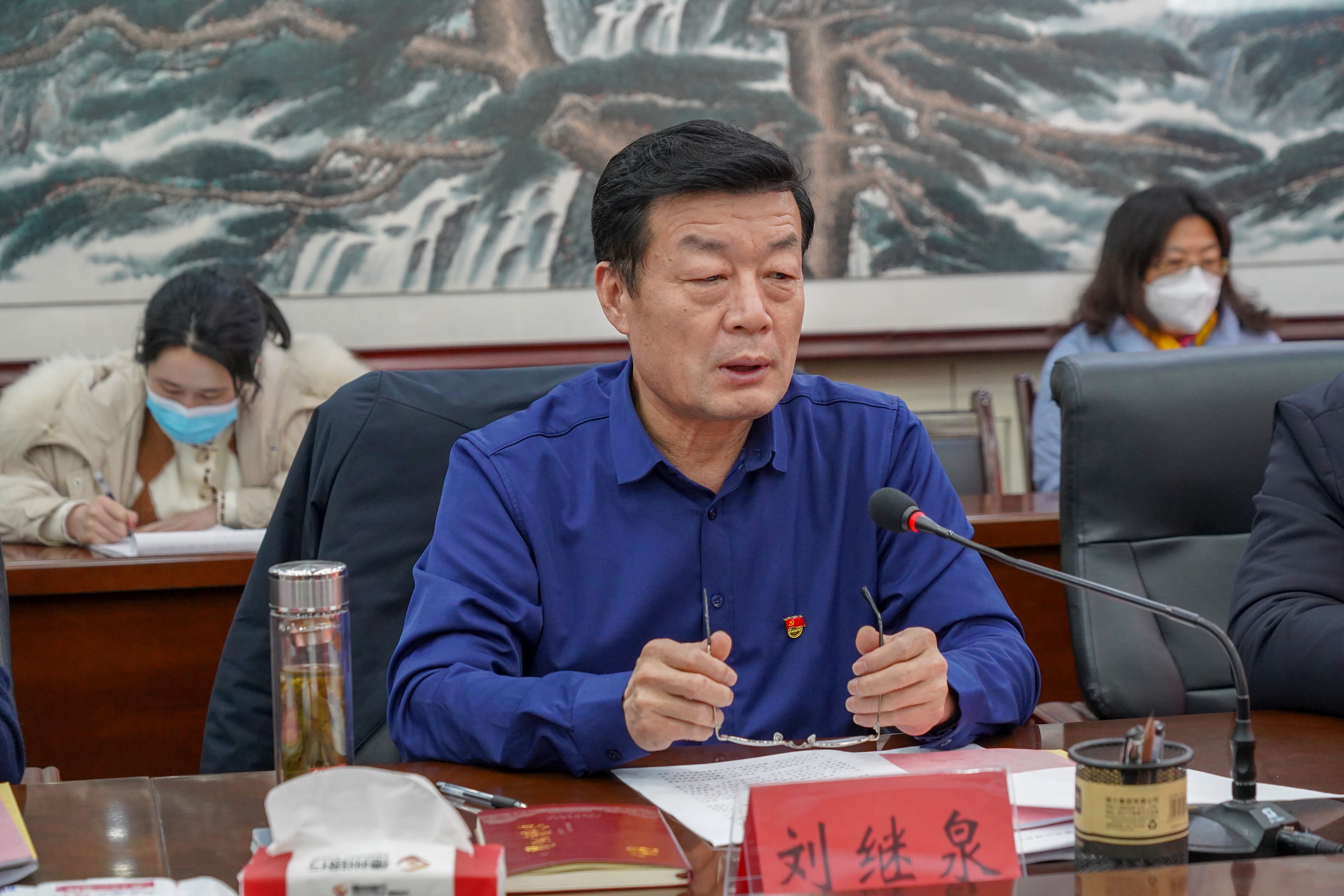 刘继泉强调,2023年,是贯彻落实党的二十大精神起步之年,也是学院新一届党委会狠抓全面从严治党、坚持以高质量党建促进学院高质量发展的重要一年。一是要切实提高政治站位,坚决将学习宣传贯彻党的二十大精神落到实处,坚持党委带头、抓好示范,采取多种形式,向广大师生讲深、讲透党的二十大精神,将党的二十大精神的学习与立德树人、人才培养、教育教学和政治理论学习紧密结合起来,注重创新形式、强化效果,实现党的二十大精神在学院教育发展中落地见效。二是要认真履行全面从严治党责任,落实“一岗双责”、“党政同责”,落实意识形态、党风廉政建设主体责任,坚持以管党治党为主责、政治建设为统领、组织建设为重点、作风建设为突破,切实将党的建设与部门工作、学院发展同谋划、同推进、同考核、同落实,提高政治判断力、政治领悟力、政治执行力,形成全面从严治党整体合力。三是要扎实推进基层党组织建设,实现党的建设与学院发展紧密融合,认真履行抓基层党建主体责任,切实提高抓基层党建的政治觉悟和能力水平,认真谋划好党的建设与教育教学、区域发展的结合文章,注重发挥作用、推动发展,实现基层党建工作提质增效,让基层党组织成为推动学院发展的坚强战斗堡垒,为办好人民满意的教育提供政治保证、作出更大贡献!
