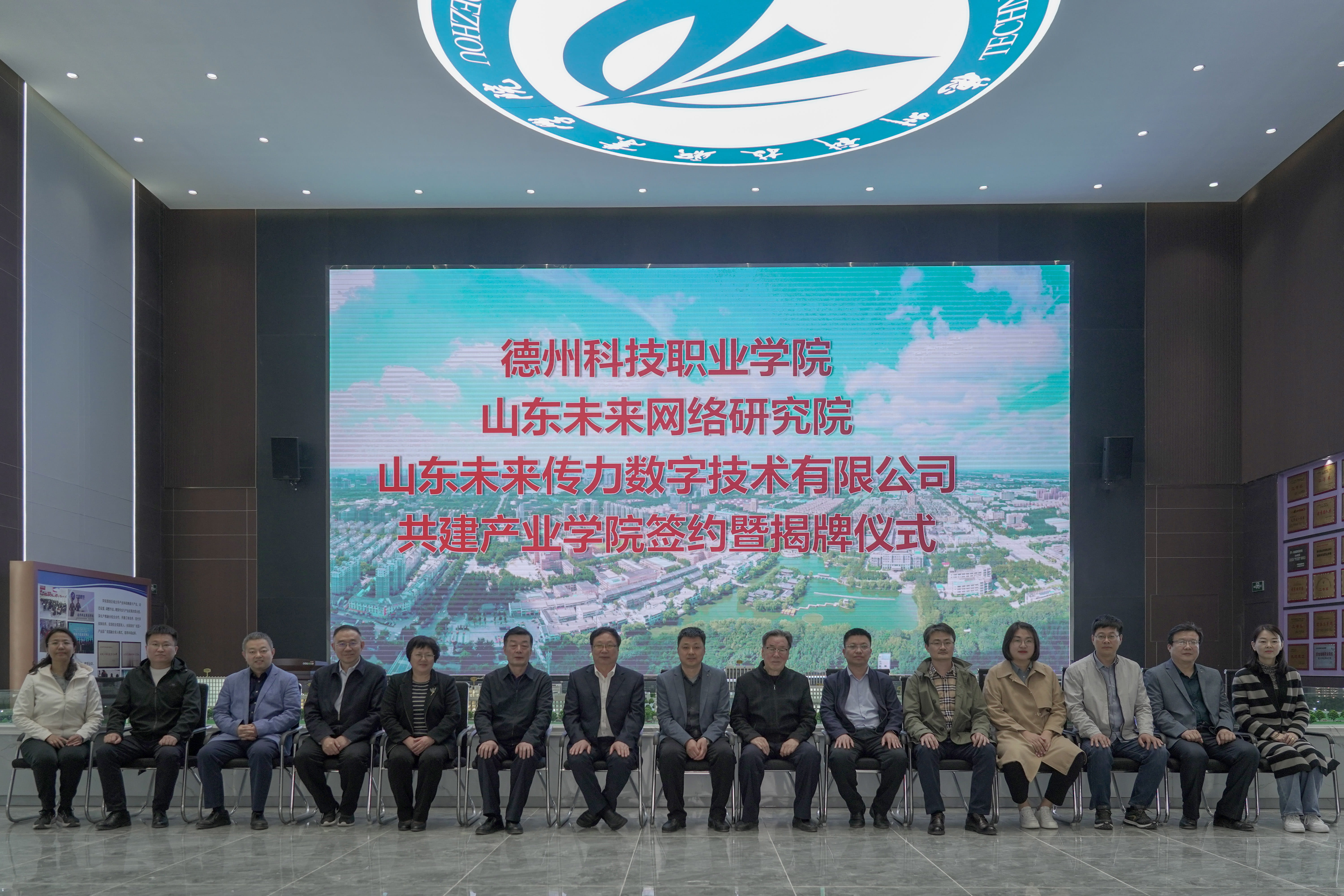 签约建桥梁,合作促发展。为凝聚校企双方优势、激发创新发展动能,服务经济社会发展、培养优秀合格人才,4月20日下午,德州科技职业学院在德州新校区,与山东未来网络研究院、山东未来传力数字技术有限公司举行共建产业学院签约暨揭牌仪式。