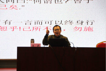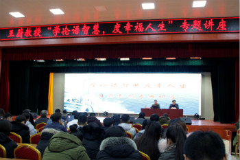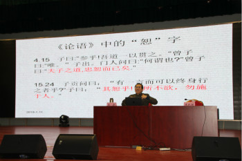 揭牌仪式结束后王蔚教授为现场的各位领导嘉宾,师生员工进行了题为“学论语智慧,度幸福人生”的专题讲座。