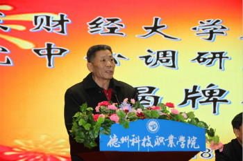 德州科技职业学院孙京家院长致辞。孙京家表示:“德州科技职业学院将依托山东财经大学雄厚的教学资源和山东省农研中心的专业技术平台,在各级党委、政府的正确领导下,通过各方的共同努力,一定能办成高质量、高水平,具有鲜明特色的一流实训基地。”