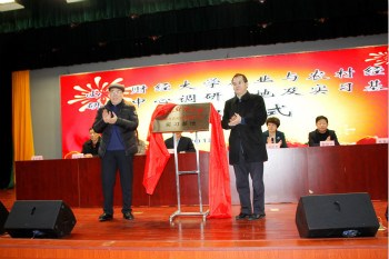 山东省农业与农村经济研究中心主任王蔚(图右)和德州科技职业学院首任党委书记、院长朱国材(图左)共同为山东财经大学农业与农村经济研究中心教学实习基地揭牌。