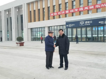 禹城东站站长王勇、田指导员热情接待了朱国材一行。考察期间,朱国材介绍了学院的发展情况,王勇站长介绍了禹城东站的基本情况及各项工作进展。朱国材表示:“禹城东站的建成通车不仅给我院学生带来了便利,也为我院人才培养提供了新的机遇,希望学院与禹城东站加强战略对接和合作交流,培养更多优秀人才。”