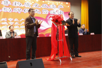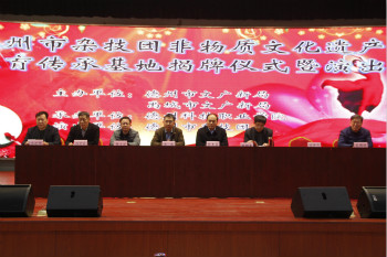 随后,禹城市委常委、宣传部长张本勇和德州市文广新局艺术科科长卓伟共同为基地揭牌。德州市杂技团非物质文化遗产教育传承基地正式落户德科。