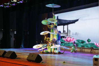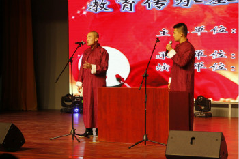 在演出现场,杂技、京剧、歌曲、相声等多种形式的节目引起了现场近1000名师生的热烈反响。《巧耍花坛》、《蹬伞》、《力量》等精彩的杂技表演点燃了现场观众的热情,将演出推向了高潮;