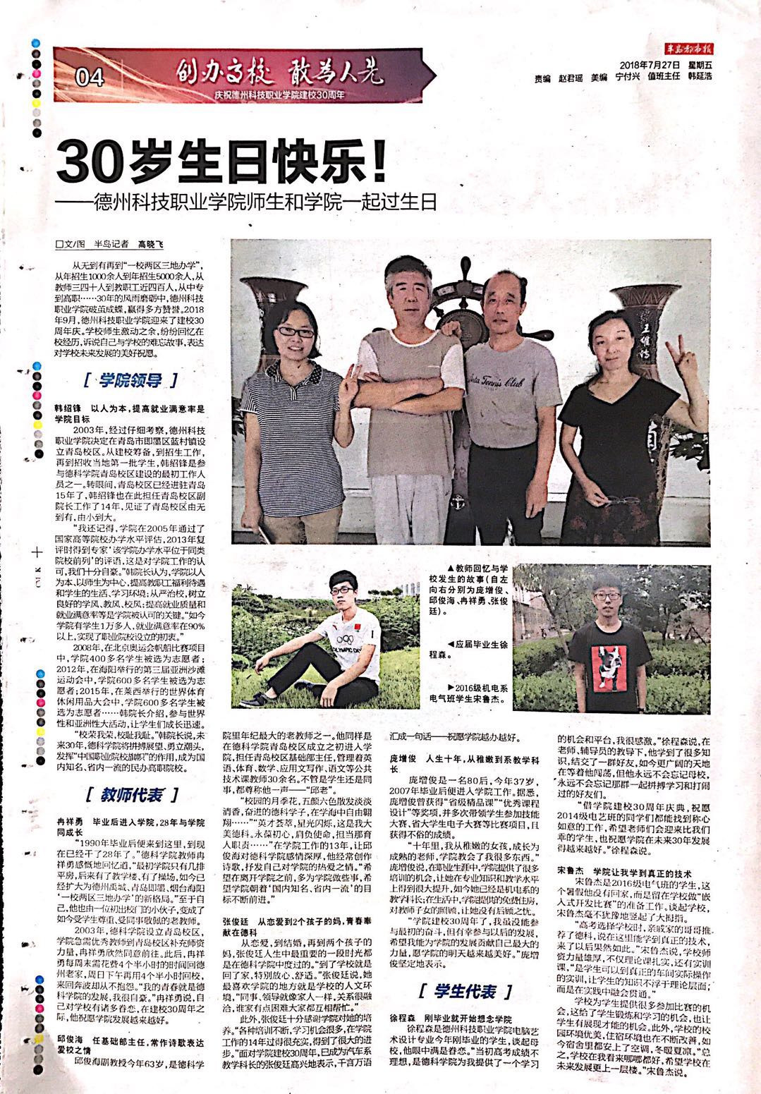 中国教育报、半岛都市报等各大媒体报道学院30周年校庆