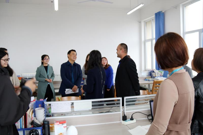 在学院党委副书记、青岛校区党总支书记朱纪纲,学院党委委员、副院长、青岛校区院长徐志利等校区负责人陪同下,展德明一行先后到实习实训基地和青岛校区,深入学生课堂随机听取了杨艳娜、袁源2位思政课教师讲授的《毛泽东思想和中国特色社会主义理论体系概论》课程;随后来到思政课教师办公室,与每名教师进行交流,了解他们在工作、教学、科研、生活等方面情况。在青岛校区党员活动室和党建办公室,展德明等分别与校区党建办负责人、工作人员交流,并查阅资料、听取汇报,调研青岛校区今年以来党建工作开展情况。