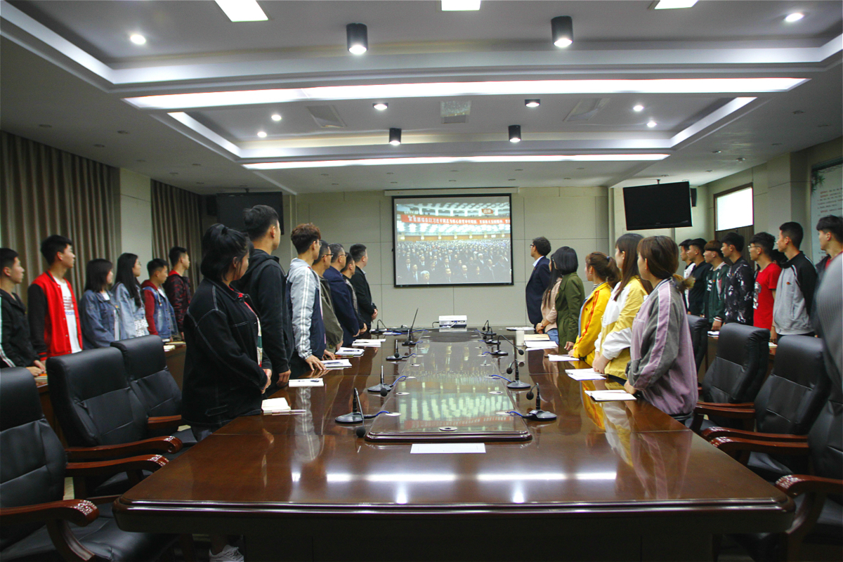 4月30日上午10时30分,德州科技职业学院团委组织团员青年和团干部60余人在实验楼二楼会议室集中收看纪念五四运动100周年大会。