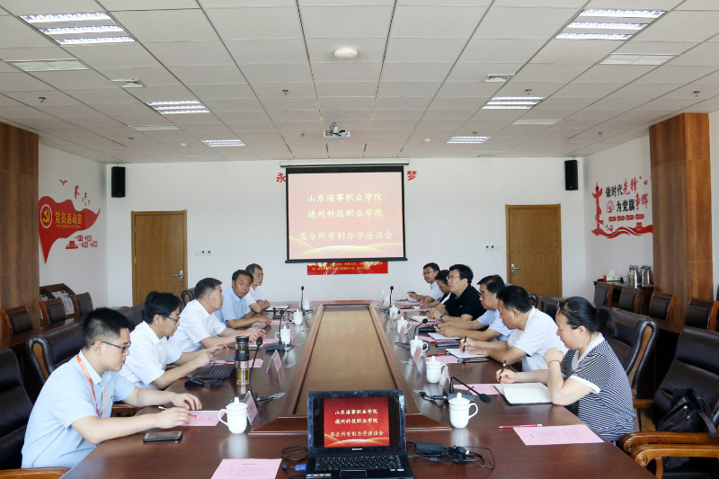 展德明、周伟分别介绍了学院办学以及人才培养、实训就业、校企合作、专业设置等方面情况。展德明指出,近年来,山东海事职业学院依据潍坊国家职业教育创新发展试验区先行先试相关政策,积极把握机遇、乘势而上,主动创新、深入实践,成功探索了一条吸收社会资本的混合所有制办学模式,具有强大的创新活力和发展驱动力。学院将结合实际、突出重点,认真学习山东海事职业学院在混合所有制办学体制方面的创新做法和优秀经验,不断推进学院校企合作、产教融合取得新突破。