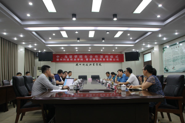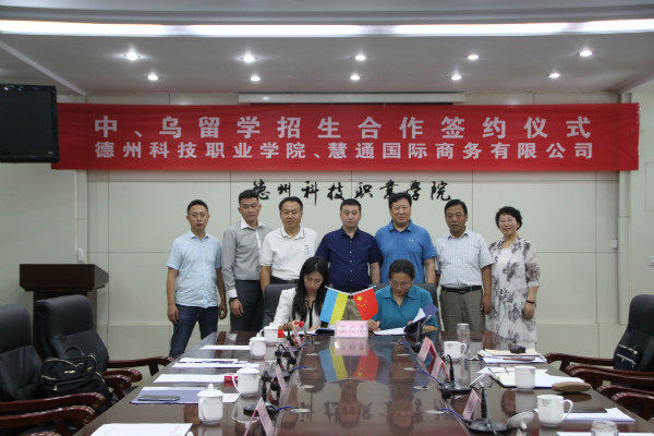 孙君与史文婷共同签订德州科技职业学院与慧通国际商务有限公司中、乌留学招生合作协议。