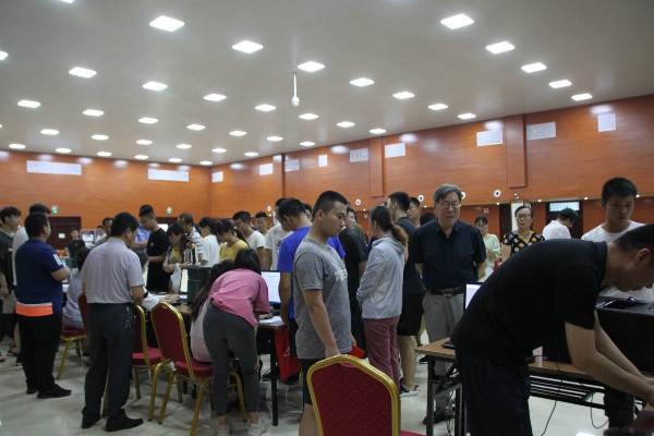 报名人员陆续到学院图书馆三楼,报名现场井然有序。