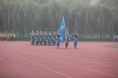 开学典礼结束后,出席领导与全体军训教官合影留念。