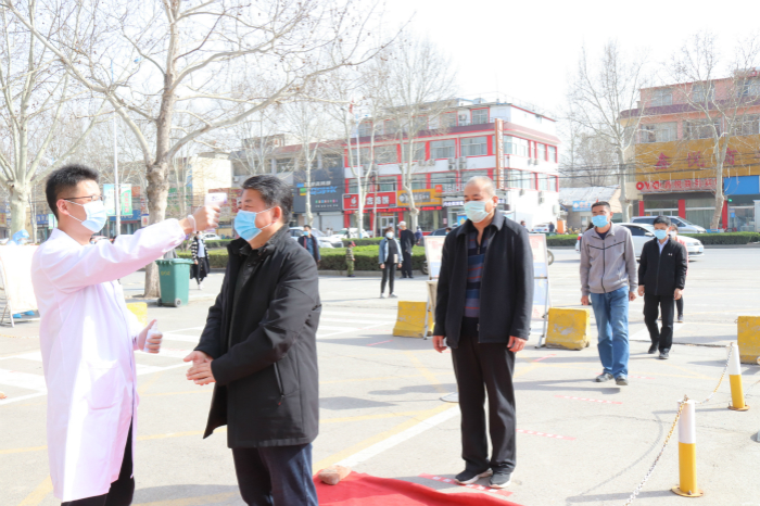19机电1班、19机电2班,按地面标识线间隔2米排队,依次等候测温登记进入校园。期间检测出某学生体温异常,工作人员将其带到临时留观点,同时通知辅导员。辅导员(着防护套装A)到达临时留观点安抚学生情绪不要恐慌。由留观转诊组值班人员再次对其进行腋下测温。经检测体温仍高于37.3°,留观转诊组向值班院领导汇报。值班院领导立即向突发疫情应急处置工作领导小组报告,启动应急预案,联系市中医院发热门诊。由辅导员和留观转诊组陪同及时将体温异常学生送至医院做进一步检查。辅导员与学生家长保持联系,及时反馈诊治结果。学生工作处负责及时上报禹城市教体局、德州市教体局,严格按照疾控中心指导,进一步落实防疫措施。