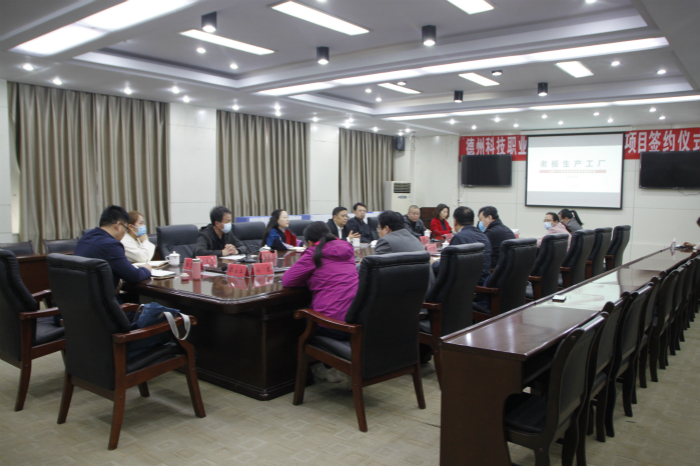 在热烈掌声中,朱纪辉与谭勇分别在项目合作协议书上签字。