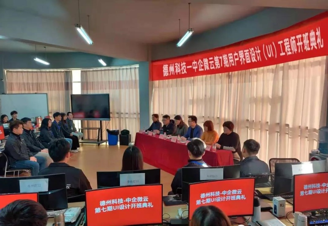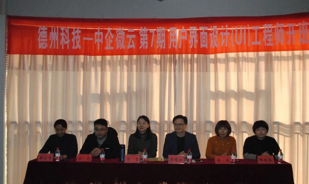 12月15日下午,德州科技-中企微云第7期用户界面设计(UI)工程师开班典礼在学院主校区实验楼举行。学院智能工程学院院长冯莹,中企微云市场总监李国栋,教学总监李欢,以及主校区校企合作处、教务处等部门有关人员参加活动。学院主校区信息财经学院院长邵淑华主持开班仪式。