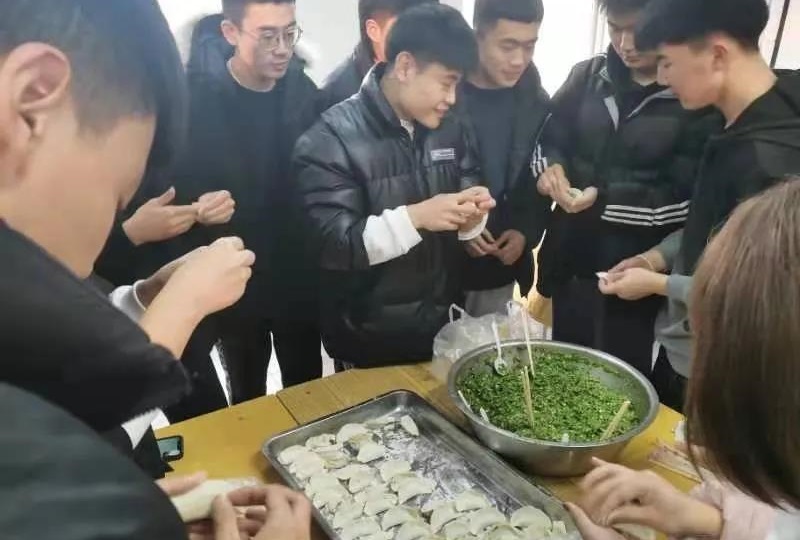 在这一天老师和同学早早的准备好食材,准备在这个节日大展身手,擀皮、包馅、煮饺子...老师和同学们工作起来有条不紊,大家围在一起包饺子,期间有不会的同学,大家一起齐帮忙,用各种办法教给同学如何包出成功的饺子,欢声笑语就这样弥漫了整个教室。