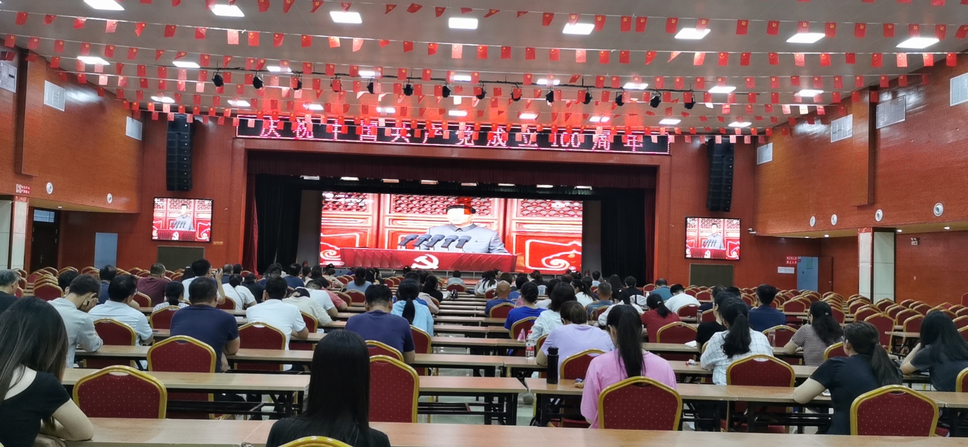 7月1日上午,庆祝中国共产党成立100周年大会在天安门广场隆重举行。中共中央总书记、国家主席、中央军委主席习近平发表重要讲话。学院组织两校区教职工,分别集中观看庆祝大会直播。